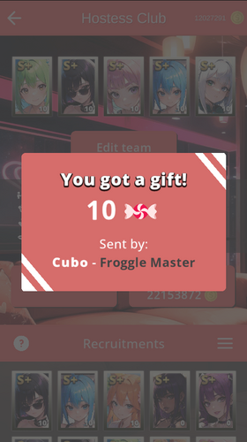 I really like this game! The conversations are interesting as well as the individual stories (Rayne is my favourite for sure!!!) Although, I can't proceed with Maya because I never got Carol in the brothel. I've done multiple recruits (diamonds and money) but never got her! I saw that she was supposed to be the first S class you get when recruiting, was it changed? Aside from that, I'm extremely excited for future updates (assuming there's more to come) :)